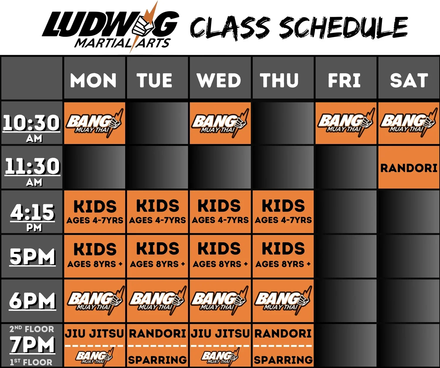Bang Muay Thai kickboxing is a striking system steeped in legacy and tradition. It is a combination of both Dutch style kickboxing and Muay Thai kickboxing, that has been perfected in some of the top competitions in the world. Our classes are not only a good workout but teach practical and beginner striking techniques that are applicable in self-defense as well as in the ring. At Ludwig Martial Arts we strive to create a supportive community, starting with our coaching staff and extending all the way to each team member on the mat, in order to help you achieve your goals in a safe, positive dojo.